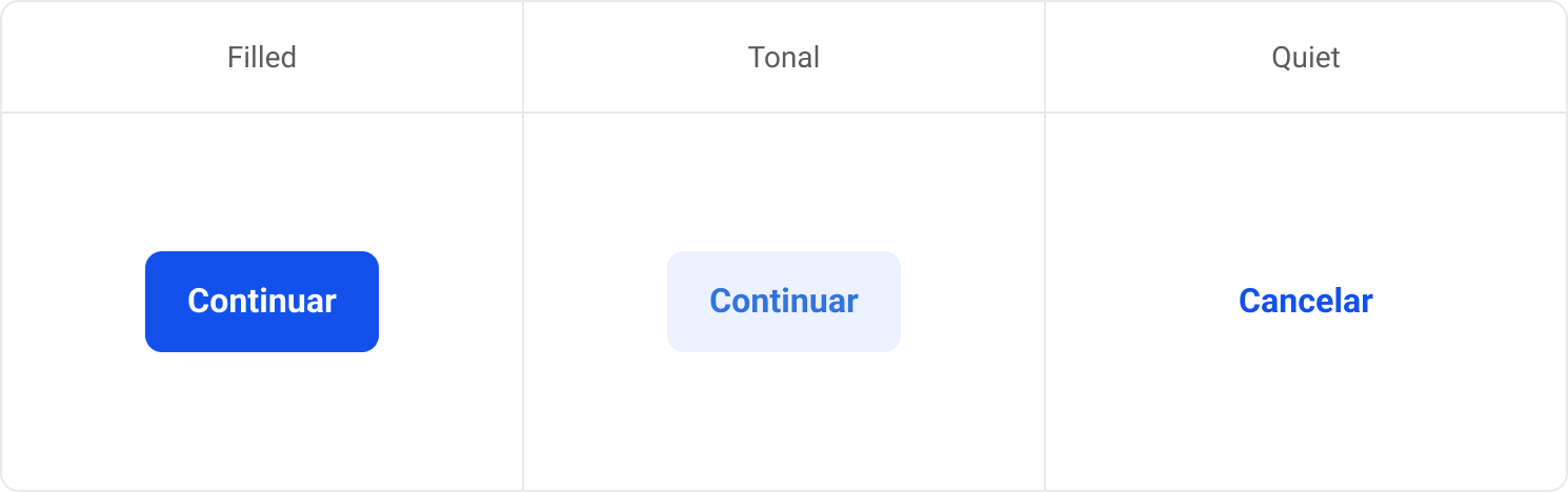 El botón Filled es el que continua el flujo y el Quiet le da flexibilidad a las personas con un camino alternativo.