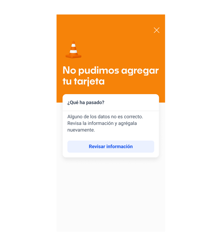 Los estados de error permiten mostrar cuándo no es posible concretar la acción que realizó la persona o algo sale mal en el servidor. Persisten hasta que puedan ser resueltos tanto por la persona o el sistema.